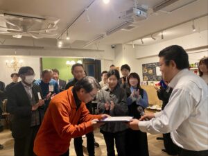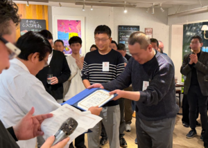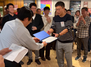 忘年会も終盤に差し掛かったところで、表彰式が行われました。会社からは3つの表彰がありました。